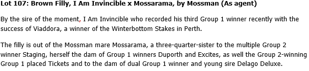 107 I Am Invincible Mossarama Filly Brown
