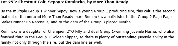 In recent years Corumbene Stud’s drafts have included Group One winners Sebring, True Jewels and Eagle Falls, Group Two winner Pureness as well as Listed winners Noesis, Mr Unforgettable, Raceway and Willy Jimmy.