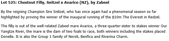 525 Snitzel Avarice (NZ) Filly Chestnut
