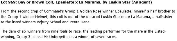 969 Epaulette La Marama Colt Bay or Brown